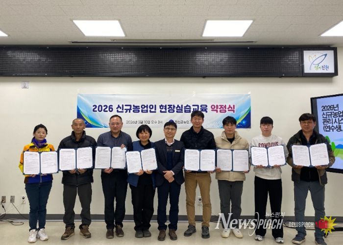 뉴스펀치 이현승 기자 | 충북 진천군 농업기술센터는 귀농인 등 신규 농업인의 안정적인 영농 정착을 지원하기 위해 ‘신규농업인 현장실습교육’ 약정식을 개최했다고 10일 밝혔다.