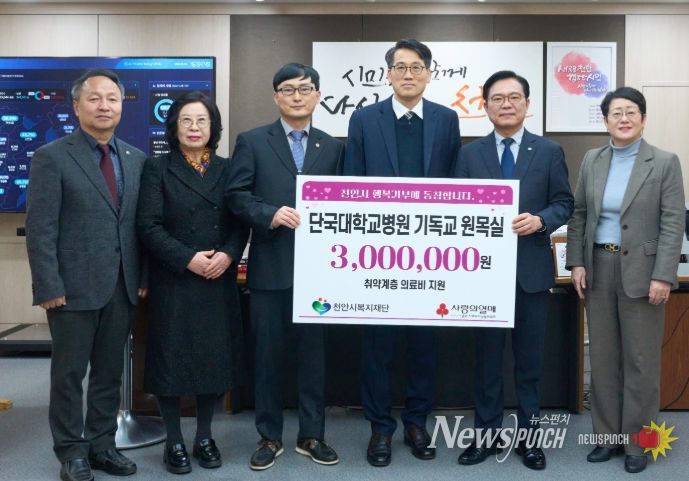 뉴스펀치 이현승 기자 | 천안시복지재단은 지난 10일 단국대학교병원 기독교 원목실이 사랑나눔 바자회 수익금 300만 원을 기탁했다고 밝혔다.