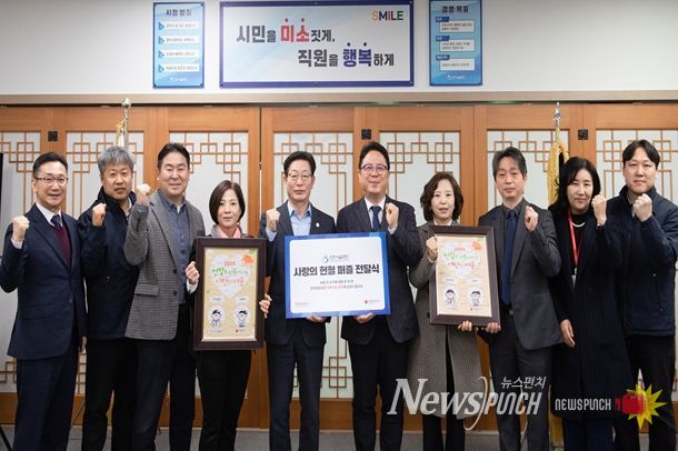 뉴스펀치 정홍균 기자 | 인천시설공단(이사장 김재보)은 지난 11일, 지속적인 헌혈 봉사활동을 통해 ‘사랑의 헌혈퍼즐’을 완성하고, 대한적십자사 인천혈액원(원장 김영섭)으로부터 완성된 퍼즐을 전달받았다.