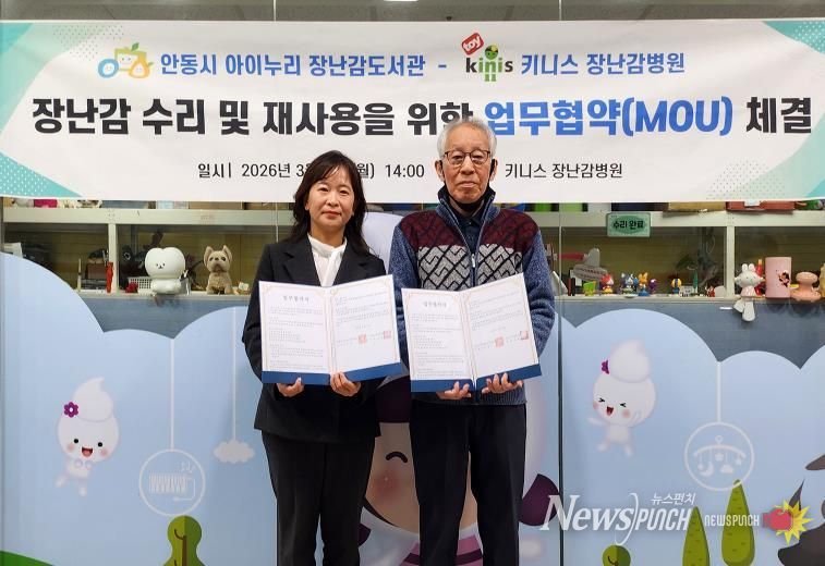 뉴스펀치 박세훈 기자 | 안동시는 아이누리장난감도서관과 키니스 장난감병원이 장난감 수리와 재사용 문화 확산을 위한 업무협약(MOU)을 체결했다고 밝혔다.