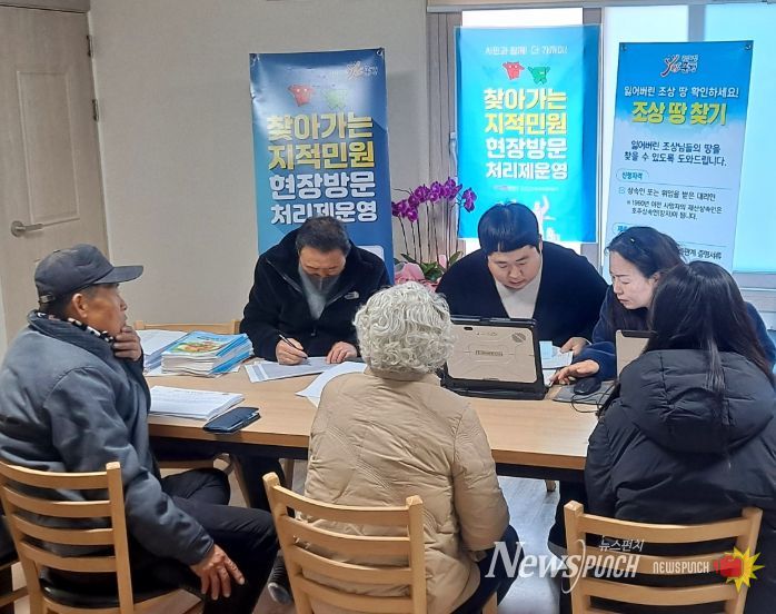 뉴스펀치 박세훈 기자 | 문경시는 지난 3월 10일, 산북면 석봉리(오전)와 소야리(오후)를 차례로 방문하여 시민들의 토지 관련 궁금증을 현장에서 해소하는 '찾아가는 지적 민원 현장 처리제'를 실시했다.