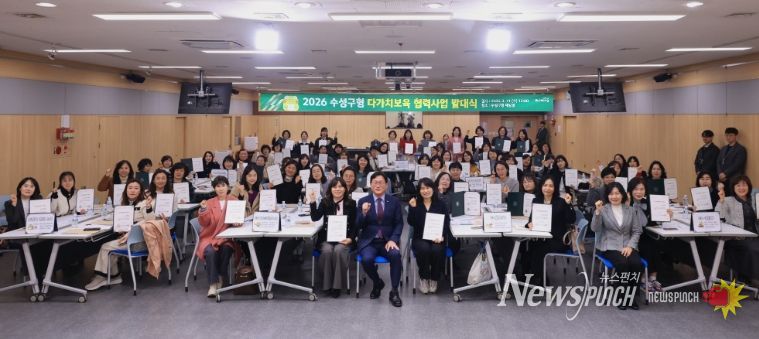 뉴스펀치 조평훈 기자 | 대구 수성구는 지난 11일 구청 대강당에서 어린이집 간 협력과 상생을 통한 보육환경 개선을 위해 ‘2026년 수성구형 다가치보육 협력사업 발대식’을 개최했다.
