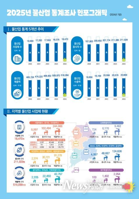 2024년 기준 물산업 사업체 수는 전년도(1만 8,075개) 대비 약 2.2% 증가한 1만 8,470개로 나타났다.