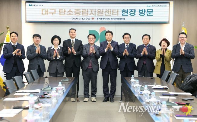 뉴스펀치 조평훈 기자 | 대구시의회 경제환경위원회는 제323회 임시회 기간인 3월 12일, 대구정책연구원 내 위치한 ‘대구탄소중립지원센터’를 방문해 지역 기후 위기 대응 및 탄소중립 이행 상황을 점검하고 2050 탄소중립의 차질 없는 실현을 위한 체계적인 업무 추진을 주문했다.