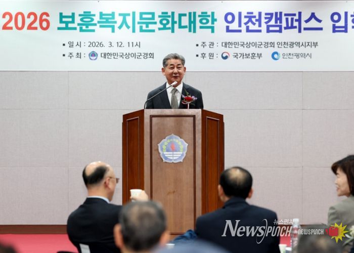 뉴스펀치 정홍균 기자 | 인천광역시의회 정해권 의장(국・연수구1)은 12일 인천상이군경회가 주관한 ‘2026년도 보훈복지문화대학 인천캠퍼스 입학식’에 참석해 국가유공자와 보훈 가족을 격려했다.