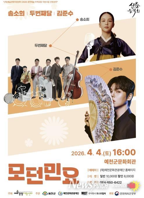 뉴스펀치 박세훈 기자 | 예천군과 (재)예천문화관광재단은 오는 4월 4일 오후 4시, 예천군문화회관에서 국악과 밴드 사운드가 어우러진 공연 ‘모던민요’를 선보인다.