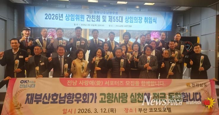 뉴스펀치 김용희 기자 | 전라남도는 12일 부산에서 열린 ‘2026년 재부산호남향우회 상임위원 간친회 및 제55대 상임의장 취임식’에 참석해 고향사랑 실천 도정설명회를 개최, 고향사랑 실천 확산을 위한 교류협력을 강화키로 했다.