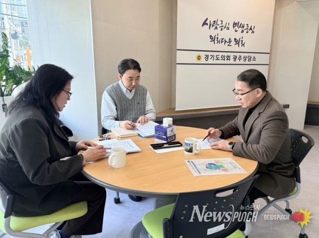 뉴스펀치 박상훈 기자 | 경기도의회 경제노동위원회·도청 예산결산특별위원회 김선영 부위원장(더불어민주당, 비례)은 3월 12일 경기도의회 광주상담소에서 경기도 청년기회과 관계자들로부터 ‘경기청년 사다리 프로그램’ 추진 현황에 대해 보고받고, 운영 계획을 논의하는 업무협의를 가졌다.