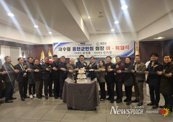 뉴스펀치 조평훈 기자 | 홍천군은 3월 12일 수원시에서 열린 재수원 홍천군민회 이취임식에서 신기선 회장이 새로 취임한 가운데, 재수원 홍천군민회와 재수원 강원특별자치도민회(회장 이호용)가 홍천군에 고향사랑기부금을 전달했다고 밝혔다.