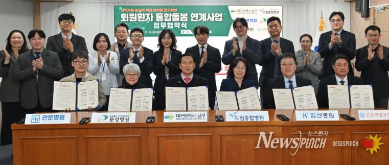 뉴스펀치 조평훈 기자 | 대구 남구는 지난 12일 퇴원환자의 지역사회 성공적 복귀·안착을 돕기 위해 지역 내 병원 5개소와 “퇴원환자 통합돌봄 연계사업” 업무협약(MOU)을 체결했다.