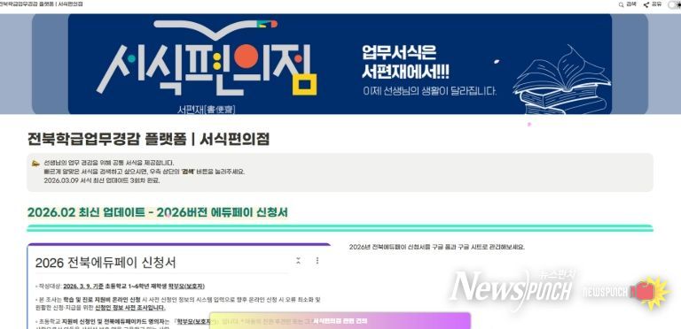 뉴스펀치 최영남 기자 | 전북특별자치도교육청이 교사 행정업무 경감을 위해 운영하는 ‘AI 서식편의점’의 기능 및 편리성을 한층 강화한다.