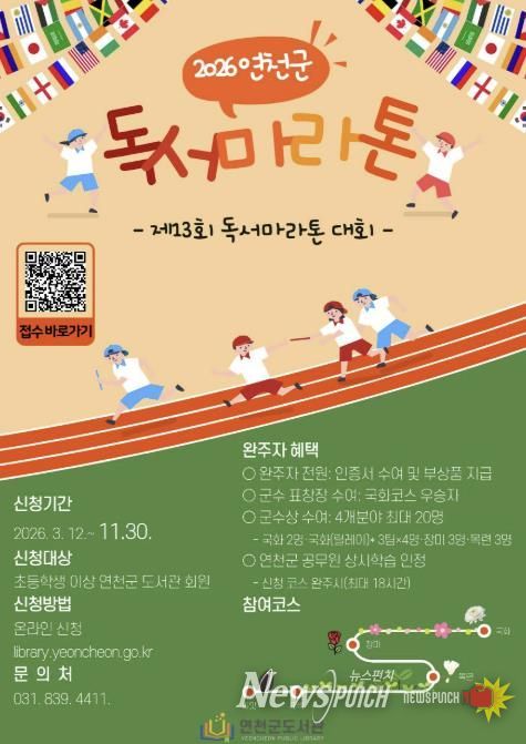 뉴스펀치 박상훈 기자 | 연천군 도서관은 지난 12일부터 11월 30일까지 ‘제13회 독서마라톤대회’를 운영한다. 이번 대회는 책을 통한 군민 간 소통과 공감, 독서 문화 확산을 목적으로 한다.