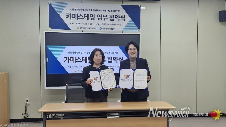 뉴스펀치 정홍균 기자 | 인천계양지역자활센터(센터장 한경주)는 공공영역 일자리 창출과 자활사업 자립 기반 강화를 위해 지난 3월 10일 인천광역자활센터와 ‘카페스테밍 업무협약’을 체결했다고 밝혔다.