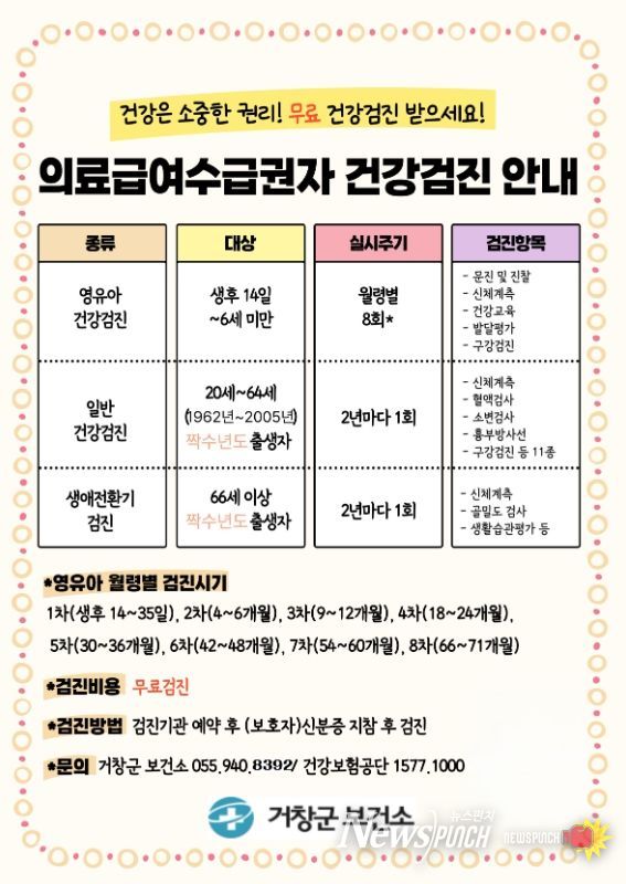 뉴스펀치 박세훈 기자 | 거창군은 의료급여수급권자의 건강증진과 질병 예방을 위해 2026년도 건강검진 비용을 연중 지원한다.