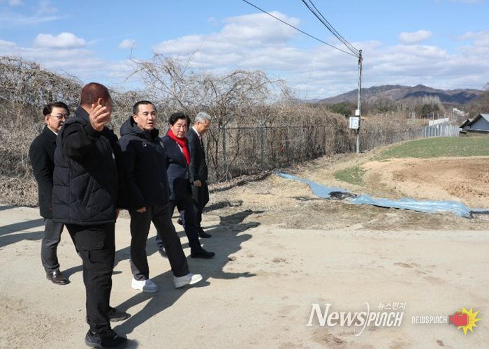 뉴스펀치 조평훈 기자 | 김진태 강원특별자치도지사는 2026년 도정 업무보고 후속조치의 일환으로 소규모 농업진흥지역 제도 운영 상황을 점검하고 지역 주민 의견을 청취하기 위해 횡성군 소재 소규모 농업진흥지역 현장을 방문했다.