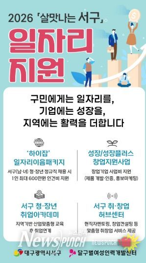 뉴스펀치 조평훈 기자 | 대구 서구는 지역 청·장년에게 안정적인 일자리를 제공하고 기업 성장을 지원하기 위해 ‘2026년 살맛나는 서구 일자리 지원사업’을 본격 추진한다고 밝혔다.
