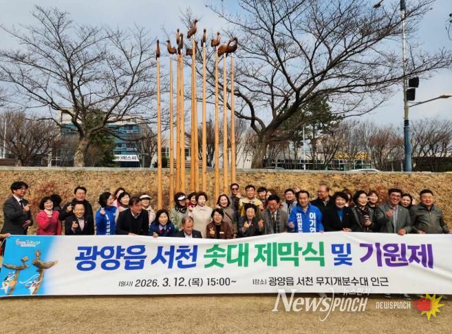 뉴스펀치 김용희 기자 | 광양시 광양읍은 지난 3월 12일 광양읍 서천 무지개분수대 인근에서 지역의 안녕과 풍요를 기원하는 ‘솟대 제막식 및 기원제’를 개최했다.