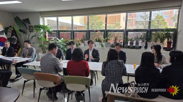 뉴스펀치 박상훈 기자 | 경기도의회 교육행정위원회 김일중 의원(국민의힘, 이천1)은 11일 이천 증포중학교 교장실에서 증포중학교 교육환경 개선 방안을 논의하기 위한 정담회를 주재하고, 신관 교실이 정상적인 학습공간으로 활용될 수 있도록 교육청의 적극적인 지원 필요성을 강조했다.