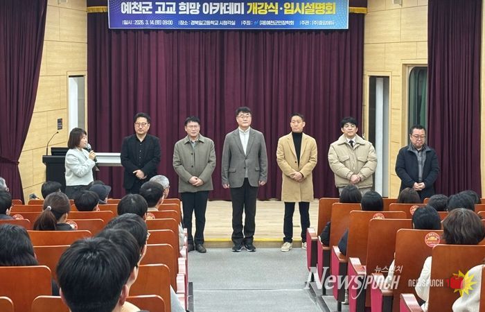 뉴스펀치 박세훈 기자 | 예천군민장학회는 14일 경북일고등학교 시청각실에서 2026학년도 예천군 고교 희망아카데미 개강식을 개최했다.