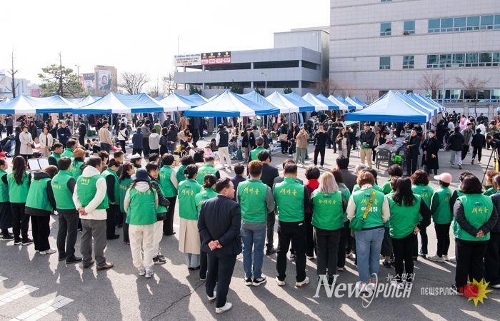 뉴스펀치 박세훈 기자 | 구미시는 새마을지도자구미시부녀회 주관으로 지난 14일 시청 별관 주차장에서 2026년 '새마을알뜰벼룩장터 및 시민소확행서비스'를 올해 처음 개장했다. 행사에는 800여 명의 시민이 참여해 봄날 주말 아침을 함께하며 장터의 활기를 더했다.