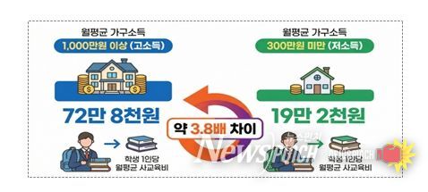 서울시교육청은 서울시 가구의 소득 수준에 따라 학생 1인당 월평균 사교육비 격차가 크게 나타난 점을 심각하게 보고, 교육격차가 심화될 가능성을 우려하고 있다.