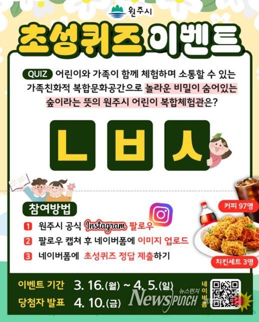 뉴스펀치 조평훈 기자 | 원주시는 봄을 맞아 공식 인스타그램 활성화를 위한 ‘초성퀴즈 및 팔로우 이벤트’를 개최한다