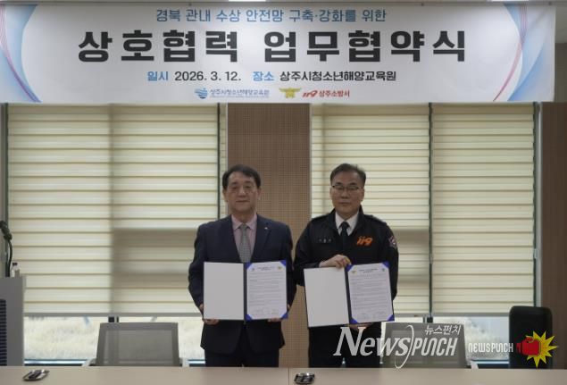 뉴스펀치 박세훈 기자 | 상주시청소년해양교육원은 3월 12일 상주소방서와 지역사회 안전망 구축 및 안전 역량 제고를 위한 업무협약(MOU)을 체결했다.