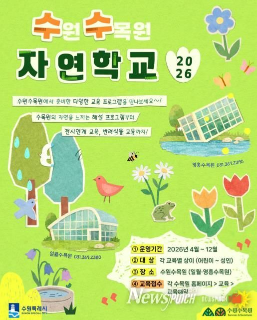 수원시 공원녹지사업소 관계자는 “수원수목원이 자연을 배우고 경험하는 열린 교육 공간으로 자리 잡길 바란다”며 “시민이 일상에서 자연의 소중함을 느낄 수 있도록 수목원 프로그램을 확대해 나가겠다”고 말했다.