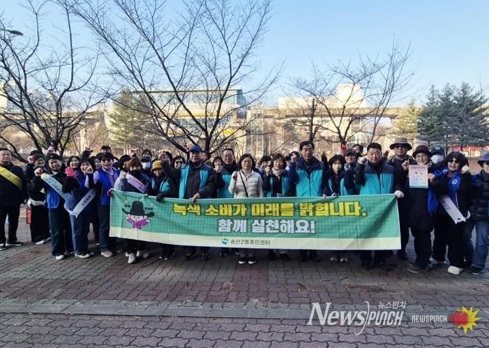 뉴스펀치 박상훈 기자 | 의정부시 송산2동주민센터는 송산2동 사회단체협의회 주관으로 3월 13일 어룡역 일대에서 관내 주민을 대상으로 녹색소비 실천의 일환인 일회용품 줄이기 캠페인을 실시했다고 밝혔다.