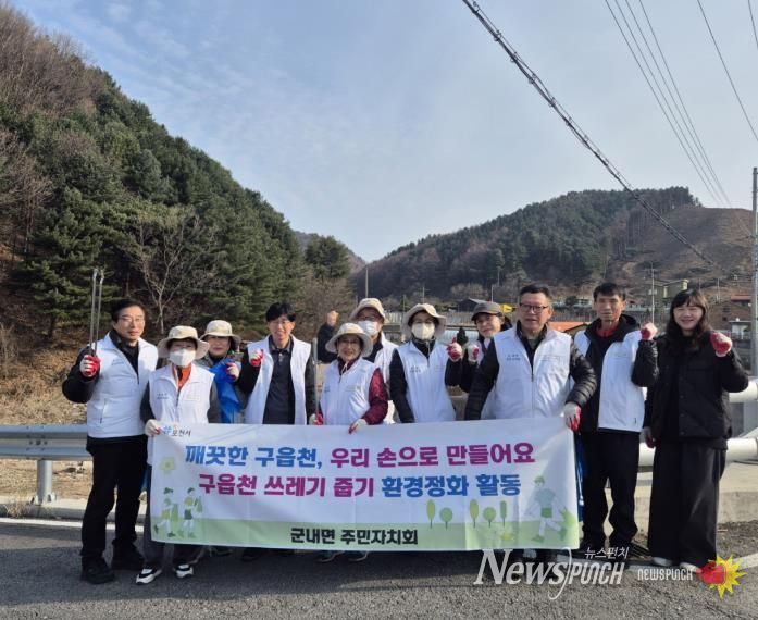 홍숙경 군내면장은 “구읍천은 지역 주민들이 함께 가꾸고 보존해야 할 소중한 공간”이라며 “이번 환경정화 활동이 산책로 조성의 시작이 되어 주민들이 더욱 쾌적하게 이용할 수 있는 공간으로 만들어지길 기대한다”고 말했다.