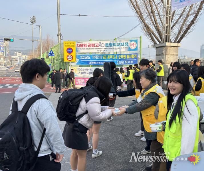 뉴스펀치 박상훈 기자 | 포천시 군내면 청소년지도협의회는 지난 16일 포천일고등학교 앞에서 등교하는 재학생들을 대상으로 학교폭력 예방을 위한 ‘든든한 컵밥 나눔 캠페인’을 실시했다.
