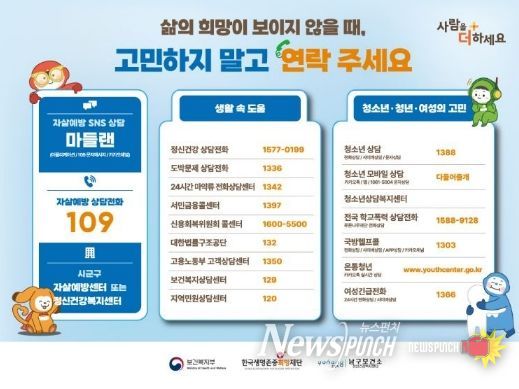 또한 이동 상담과 캠페인을 통해 주민들에게 정신건강 상담기관 정보와 자살 예방 상담전화 109를 적극 안내할 계획이다.