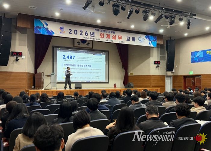 뉴스펀치 박세훈 기자 | 사천시는 16일 시청 대강당에서 신규 및 5년차 미만 공무원 150여 명을 대상으로 ‘2026년도 회계실무 교육’을 실시했다.