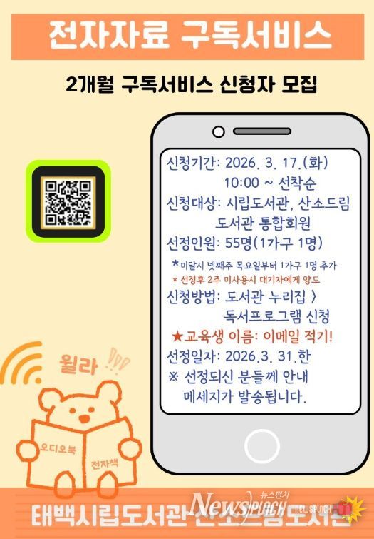 태백시 관계자는 “이번 서비스를 통해 시민들이 시간과 장소에 구애받지 않고 다양한 독서 콘텐츠를 접할 수 있을 것으로 기대한다”며 “앞으로도 시민들의 독서문화 확산과 쾌적한 독서환경 조성을 위해 지속적으로 노력하겠다”고 말했다.