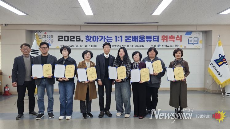 뉴스펀치 이현승 기자 | 단양교육지원청은 3월 17일 초등 4명, 중등 3명의 교육봉사자를‘찾아가는 1:1 맞춤형 지도 온배움 튜터’로 위촉했다.