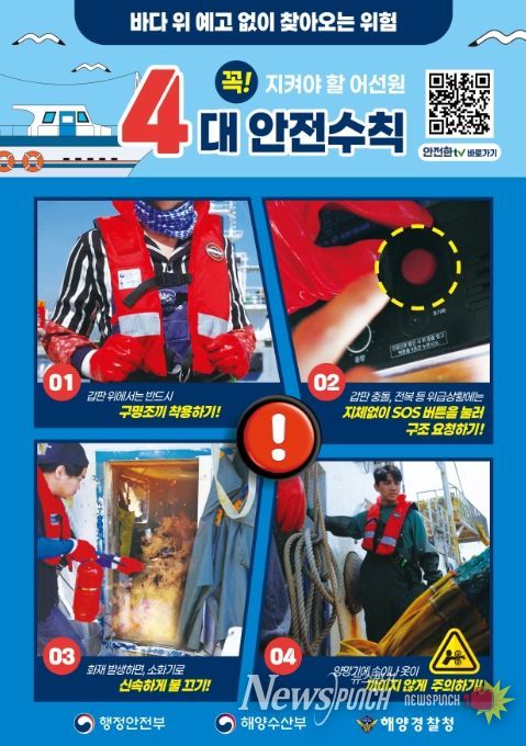 황순조 사회재난대응국장은 “봄철 바다는 잦은 안개로 인해 어선 충돌 위험이 높으므로 조업 시 각별한 주의가 필요하다”라며, “어업인 여러분께서는 안전한 조업을 위해 구명조끼 착용, 위치발신장치 상시 작동 등 안전수칙을 꼭 지켜주시길 바란다”라고 당부했다.