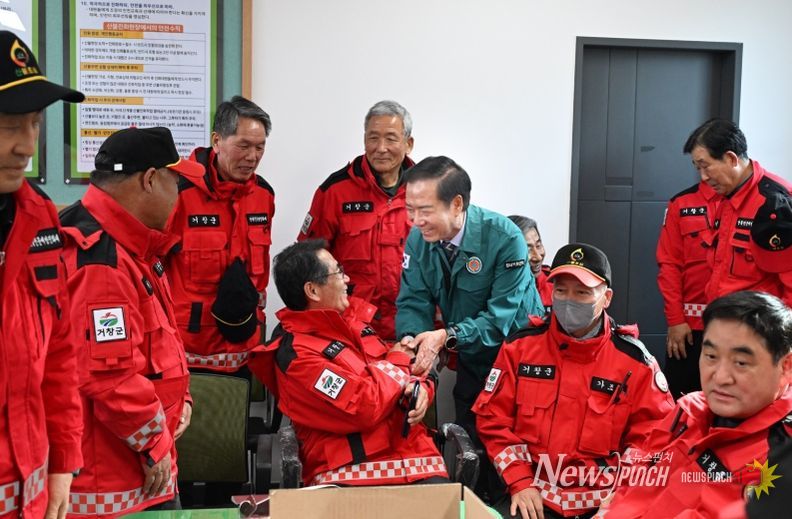 뉴스펀치 박세훈 기자 | 거창군은 지난 16일 구인모 거창군수가 산불 대응태세를 점검하고 현장에서 근무 중인 산불전문예방 진화대원들을 격려하기 위해 거창군 산불대응센터를 방문했다고 밝혔다.