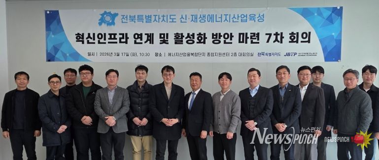 뉴스펀치 최영남 기자 | 전북특별자치도는 17일 새만금 에너지산업융복합단지 종합지원센터 대회의실에서 ‘에너지 분야 혁신인프라 연계 및 활성화 회의’를 개최하고 도내 에너지 분야 혁신기관과 함께 협력사업 확대 및 신규사업 발굴 방안을 논의했다.