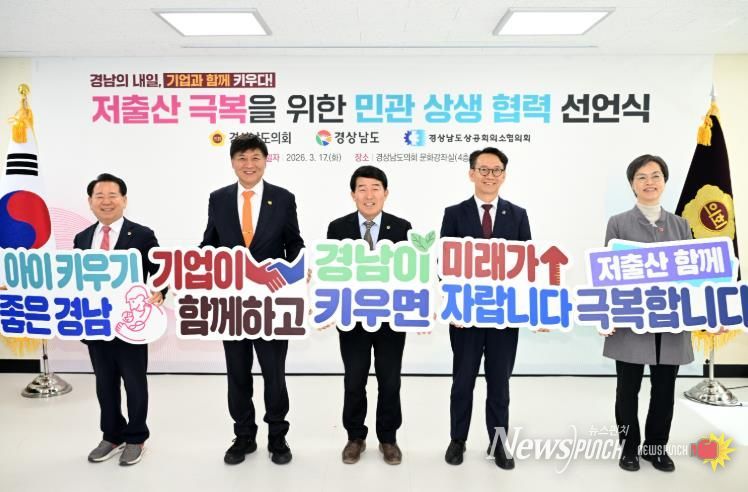 뉴스펀치 박세훈 기자 | 경상남도 저출산 대응 특별위원회는 17일 경상남도의회에서 경상남도, 경남상공회의소협의회와 함께 '저출산 극복을 위한 민관 상생 협력 선언식'을 개최했다고 밝혔다.