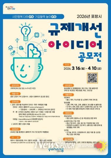 뉴스펀치 박세훈 기자 | 포항시는 일상생활과 경제활동에 불편을 주는 불합리한 규제를 시민과 함께 발굴하고 개선하기 위해 3월 16일부터 4월 10일까지 ‘2026년 포항시 규제개선 아이디어 공모전’을 개최한다.