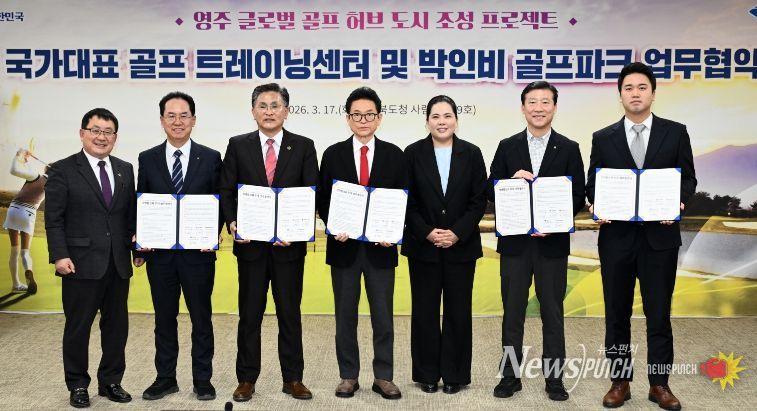 뉴스펀치 박세훈 기자 | 경상북도는 3월 17일 경북도청에서 ‘영주 국가대표 골프 트레이닝 센터 및 박인비 골프파크 조성사업을 위한 업무협약’을 체결하고 ‘영주 글로벌 골프 허브 도시 조성 프로젝트’를 본격 가동한다.