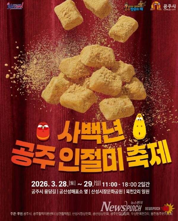 뉴스펀치 이현승 기자 | 공주시는 오는 3월 28일부터 29일까지 이틀간 산성시장과 공산성 일원 등 왕도심에서 ‘2026년 사백년 공주 인절미축제’를 개최한다고 18일 밝혔다.