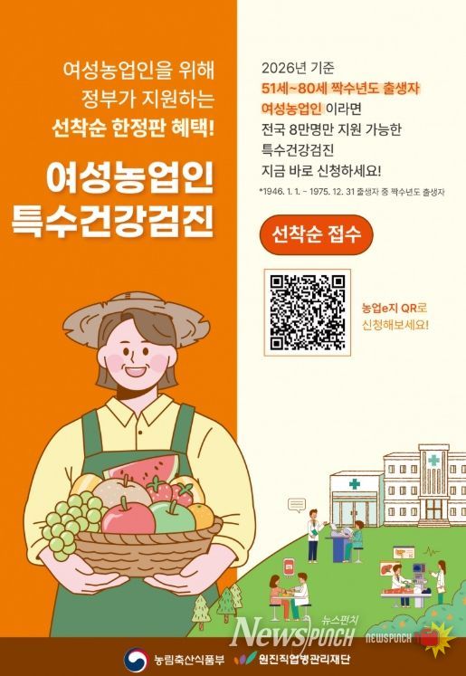 이 사업은 여성농업인을 대상으로 근골격계·심혈관계 질환 등의 질병을 조기에 진단하고, 전문의 상담 등을 통해 예방·사후 관리할 수 있도록 2년 주기로 검진받도록 돕는 사업이다.