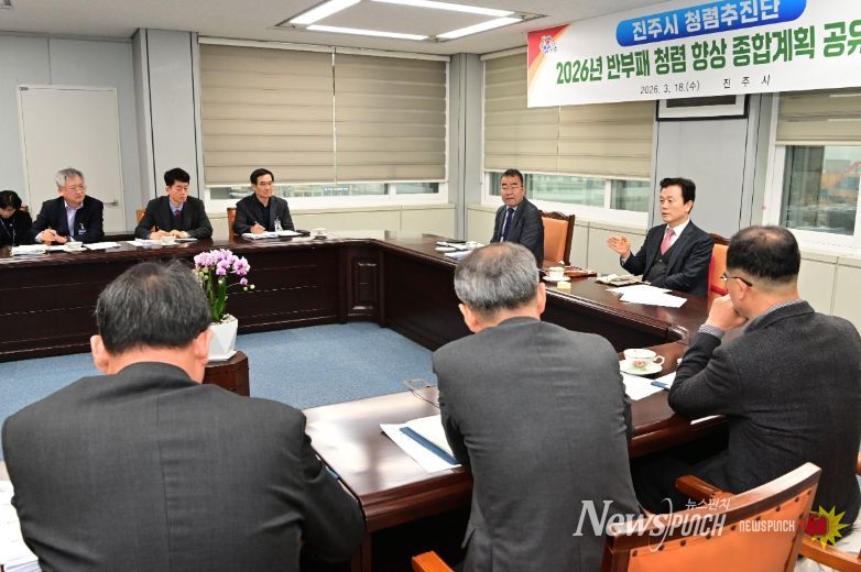 뉴스펀치 박세훈 기자 | 진주시는 18일 시장을 단장으로 부시장과 국·소장, 감사관으로 구성된 ‘청렴 추진단’이 참석한 가운데 ‘2026년 반부패 추진 계획 공유를 위한 청렴 추진단 회의’를 개최했다고 밝혔다.