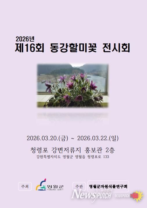 뉴스펀치 조평훈 기자 | 2026년 3월 20일부터 22일까지 영월군 청령포 강변저류지 홍보관에서 제16회 동강할미꽃 전시회를 개최한다.