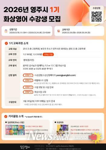 뉴스펀치 박세훈 기자 | 영주시는 지역 학생들의 영어 의사소통 능력 향상과 글로벌 역량 강화를 위해 ‘2026년 원어민 사이버 화상영어’ 제1기 수강생을 모집한다.