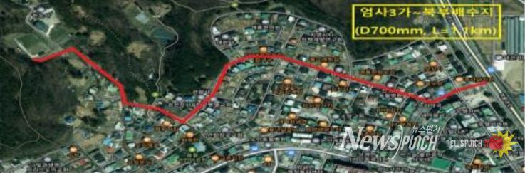 금년 3월부터는 연화교차로~엄사3가(엄사지구 송수관로 정비사업) 1.1㎞ 구간에 77억 원을 투입하여 본격적인 공사에 들어가 내년 말 준공 예정이다.