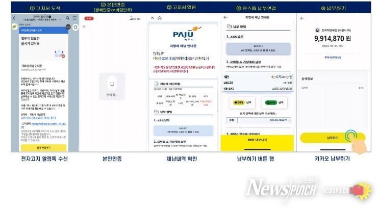 뉴스펀치 박상훈 기자 | 파주시는 지방세 체납액 징수율을 제고하기 위해 도입한 '체납 안내 카카오 알림톡 모바일 전자고지 서비스'가 뚜렷한 성과를 거두고 있다.