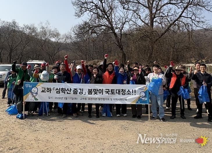 이날 행사에는 교하파출소, 신교하농협 및 교하동 발전협의회를 중심으로 한 관내 기관·단체와 인근 서패동 마을 주민 등 80여 명이 참여했다. 참여자들은 등산로와 주변에 버려진 쓰레기를 수거하며 민관이 함께 구슬땀을 흘리는 뜻깊은 시간을 가졌다.