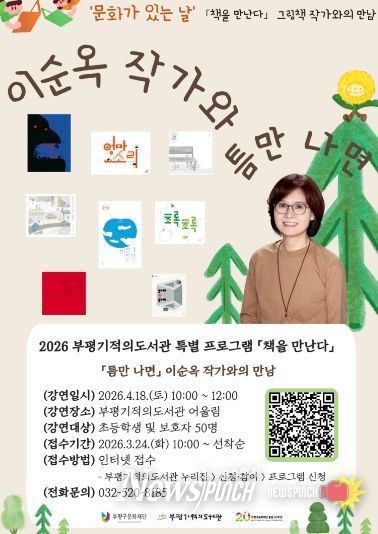 이희수 부평구문화재단 도서관본부장은 “그림책 작가와 직접 만나는 경험을 통해 어린이들이 책과 더욱 가까워지고 독서의 즐거움을 느끼는 계기가 되기를 바란다”며 “앞으로도 ‘문화가 있는 날’ 취지에 맞춰 다양한 독서문화 프로그램을 지속적으로 마련하겠다”고 말했다.
